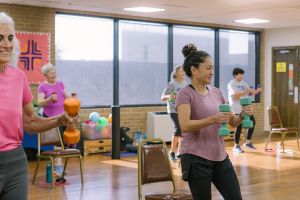 Once you walk in the door, keep walking forward until you see the stairwell that says "The FLX".